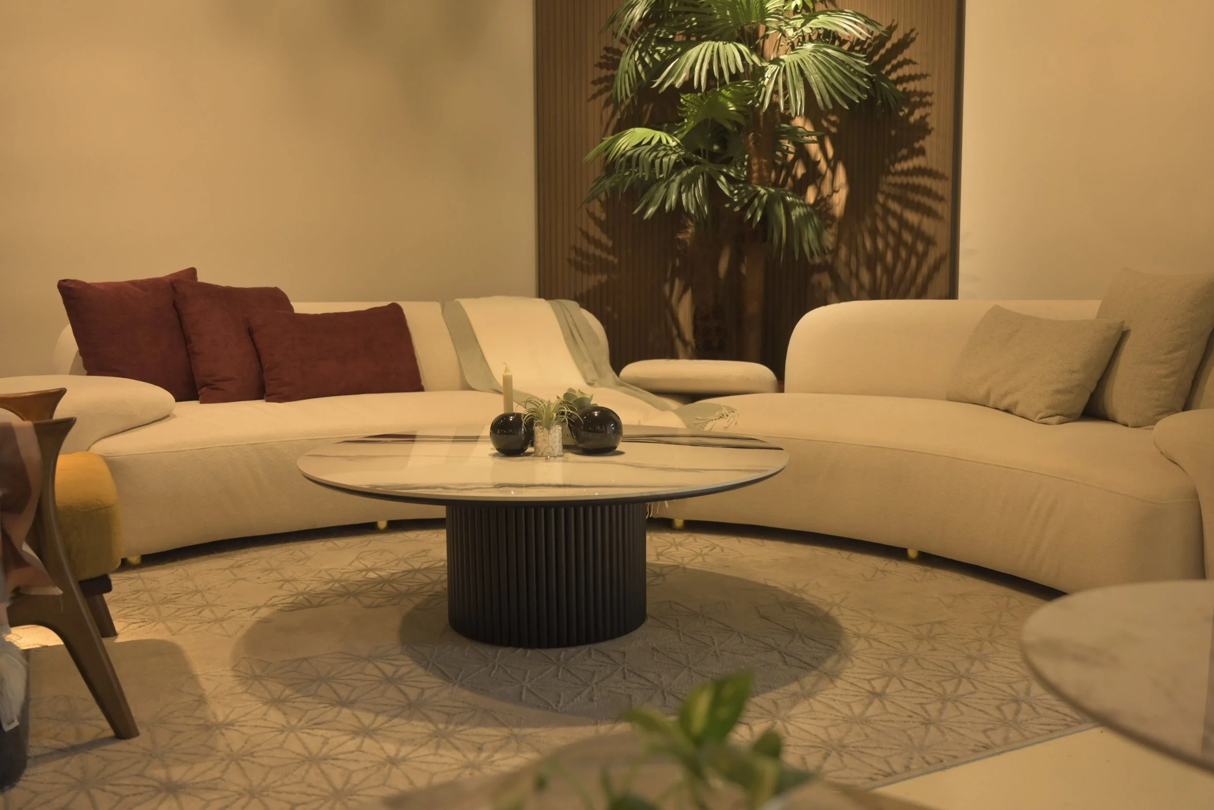 Your main sofa becomes the subject that anchors the entire frame. The foreground are smaller elements like accent chairs and a coffee table that visually sits lower than your sofa. The background are the pieces that you don’t really focus on but somehow, are equally important in giving the whole frame a certain vibe and completeness. We are talking about plants, a standing lamp, maybe a rug that peeks into the shot without stealing the spotlight.